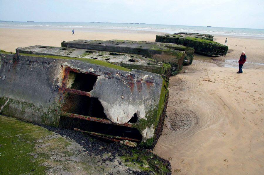 The remains of the World War II Mulberry dock at Arromanches in Normandy. The Mulberry dock consisted of a huge pre-fabricated steel and concrete landing system, built in England and towed by ship across the Channel, greatly aiding the allied landings at Arromanches in 1944. (SIPA)